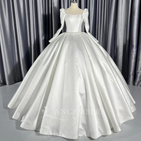 Jancember 251130エレガントなアイボリーサテンウェディングドレススクエアネック長袖取り外し可能ドレス