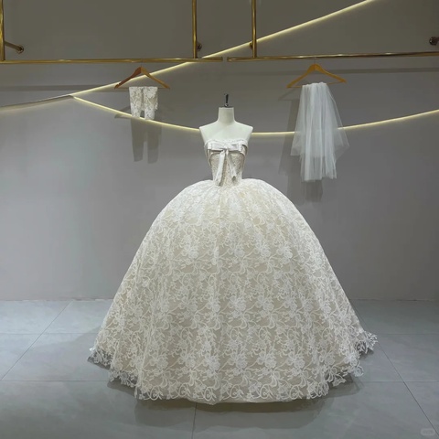 ชุดเดรสลูกไม้ปักลายสำหรับเจ้าสาวไม่มีสายรัด JFH39แฟชั่น jancemember