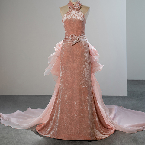 ג 'אנקמבר sfy256 אלגנטי קטיפה ורוד הליטר שמלות ערב מסיבת ערב עם רכבת