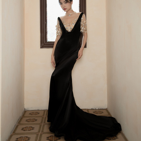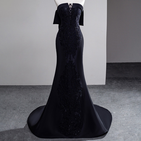 ג 'נמבר sfy90 רקמה שיק סאטן שחור שמלות ערב למסיבה