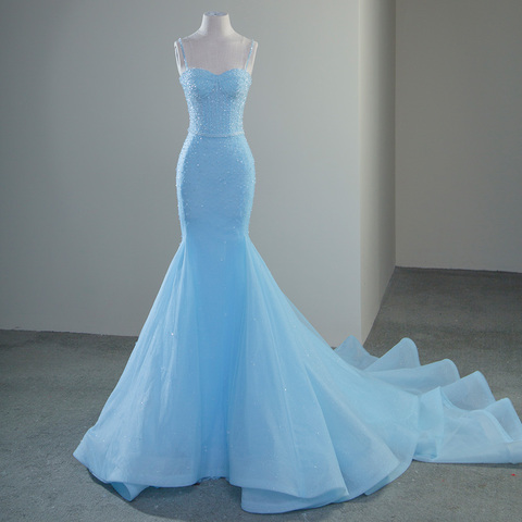 ג 'נמבר sfy84 קריסטל תינוק כחול מותק רזה שמלות ערב בתולת ים עם חגורה