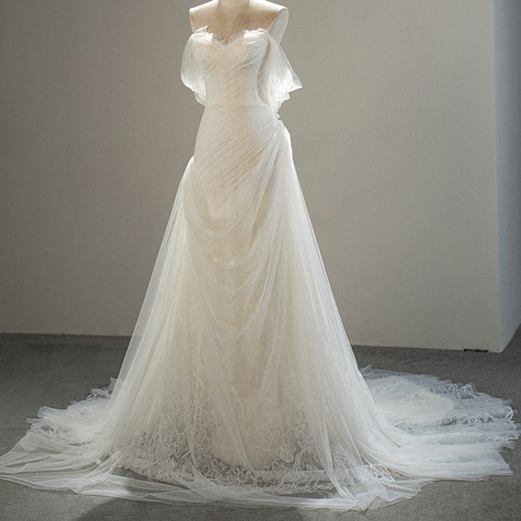 Jancember SFY225 Bonito Fora Do Ombro Francês Lace Tulle Tecido Vestidos De Vestido De Casamento