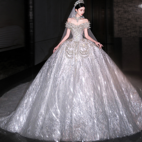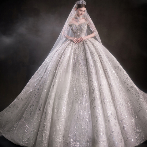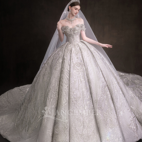 जेनब्लर Lsht103 चमकदार, कंधे की क्रिस्टल बेडिंग साम्राज्य ब्राइडल बॉल गाउन शादी की पोशाक