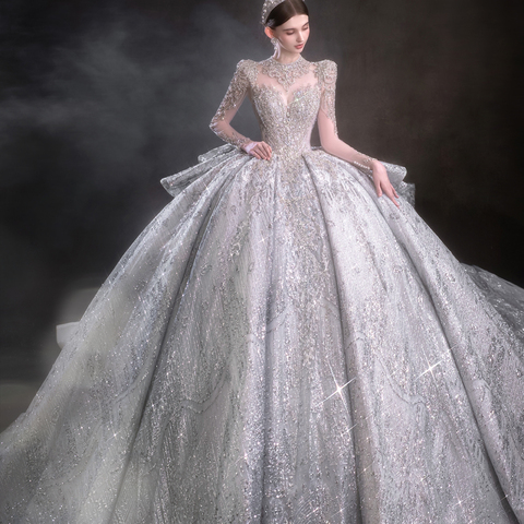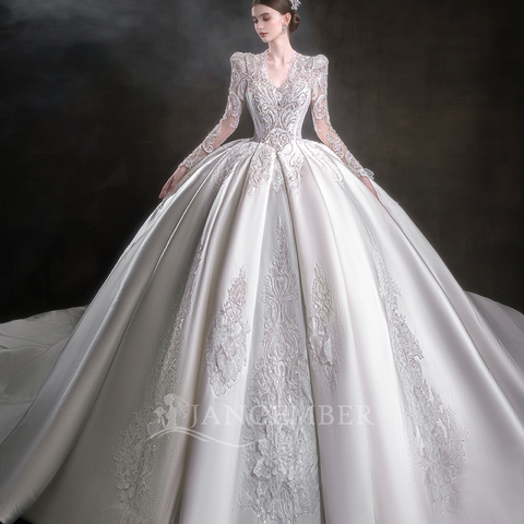 Jancerba Lsht100 आश्चर्यजनक पूर्ण आस्तीन के अनुक्रमित शादी की पोशाक