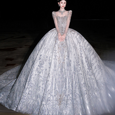 Jancback Lsht104 लक्जरी फुल आस्तीन क्रिस्टल वेस्टिडो डे नोविया शादी की पोशाक