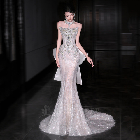 Jancerba Lsht109 ग्लिटर स्ट्रैपलेस सुंदर मर्मेड शादी धनुष के साथ दुल्हन पोशाक