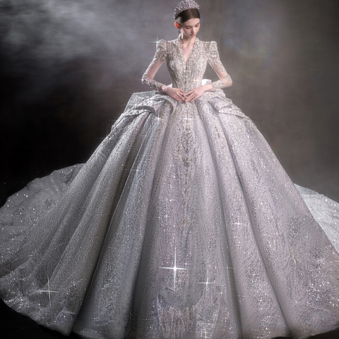 Janced Lsht102 चमकदार रानी वी-गर्दन वाली टुली शादी की पोशाक
